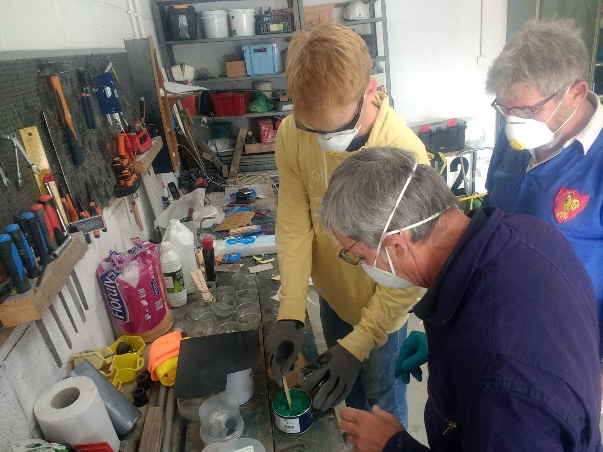 Après un petit café, Christian nous a présenté les différents types de fibre de verre ainsi que leurs caractéristiques mécaniques. Puis il nous a expliqué les techniques de réparation: depuis la préparation du support jusqu’au lustrage final en passant par